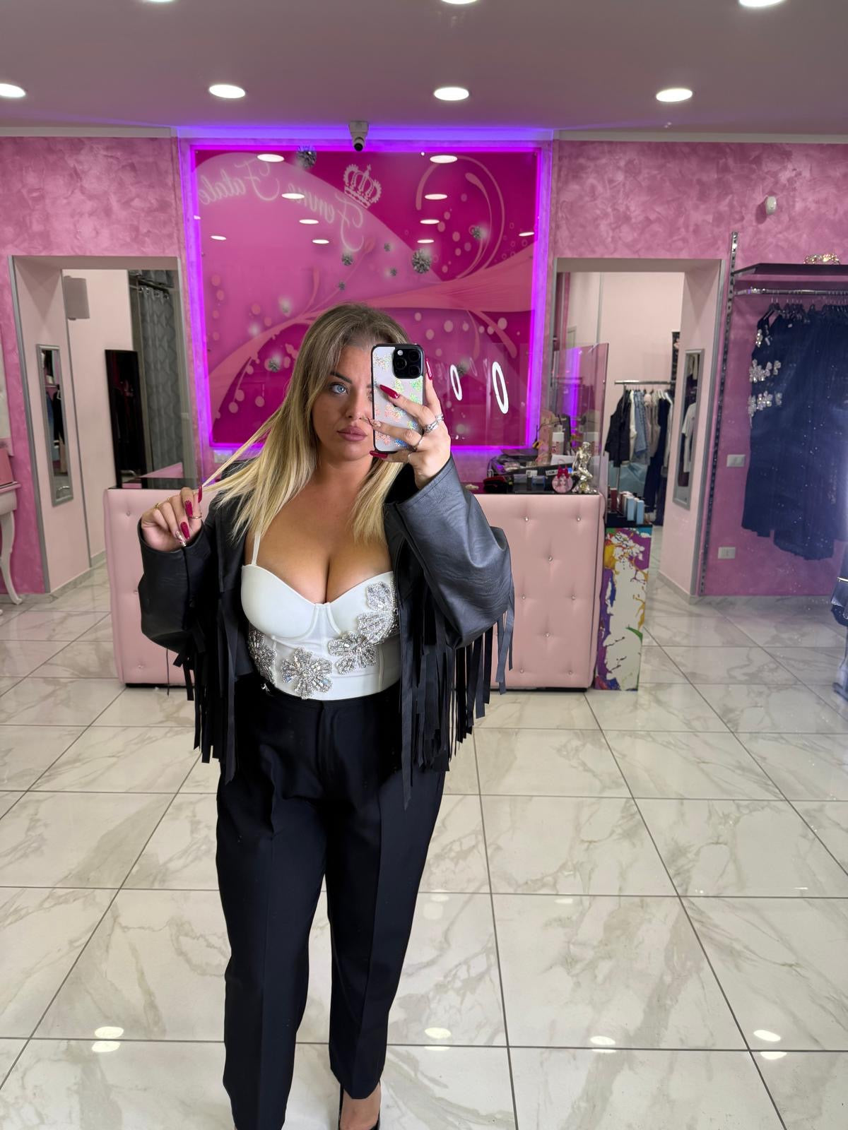 Chiodo ecopelle frange